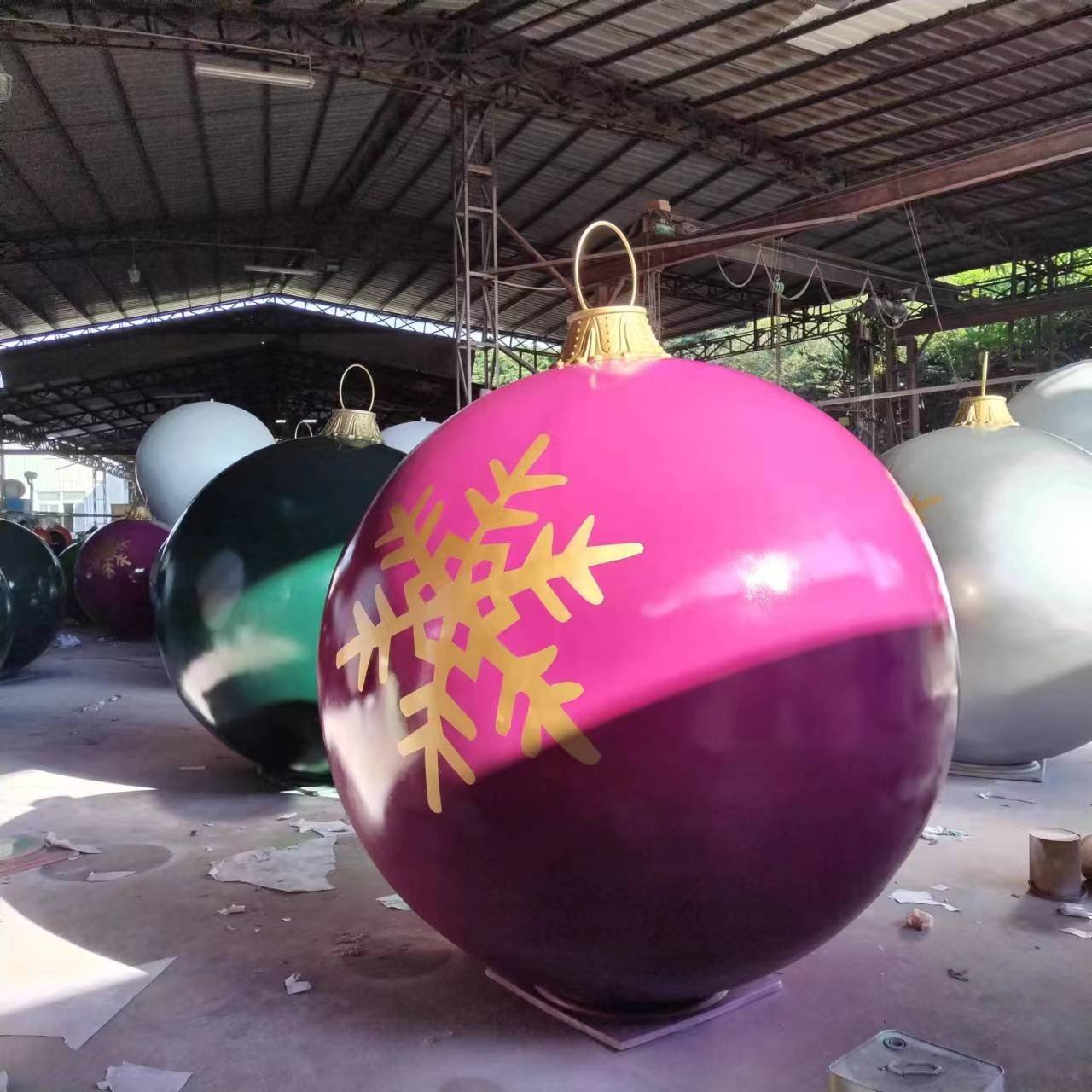 Keyword: Commercial XMAS fiberglass resin waterproof outdoor life size big large Giant Christmas balls ornaments decorations